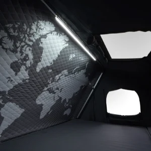 De Skycamp DLX is de ultieme daktent voor 4 personen, gebouwd op het beproefde fundament van de Skycamp 3.0 met premium upgrades voor ongeëvenaard comfort en gemak. Ontworpen met input van echte avonturiers, is hij voorzien van een USB-gevoed led-verlichtingssysteem dat zowel de binnenkant als het uitklapbare dek verlicht, met onafhankelijk dimbare bedieningselementen voor de perfecte sfeer op de camping.